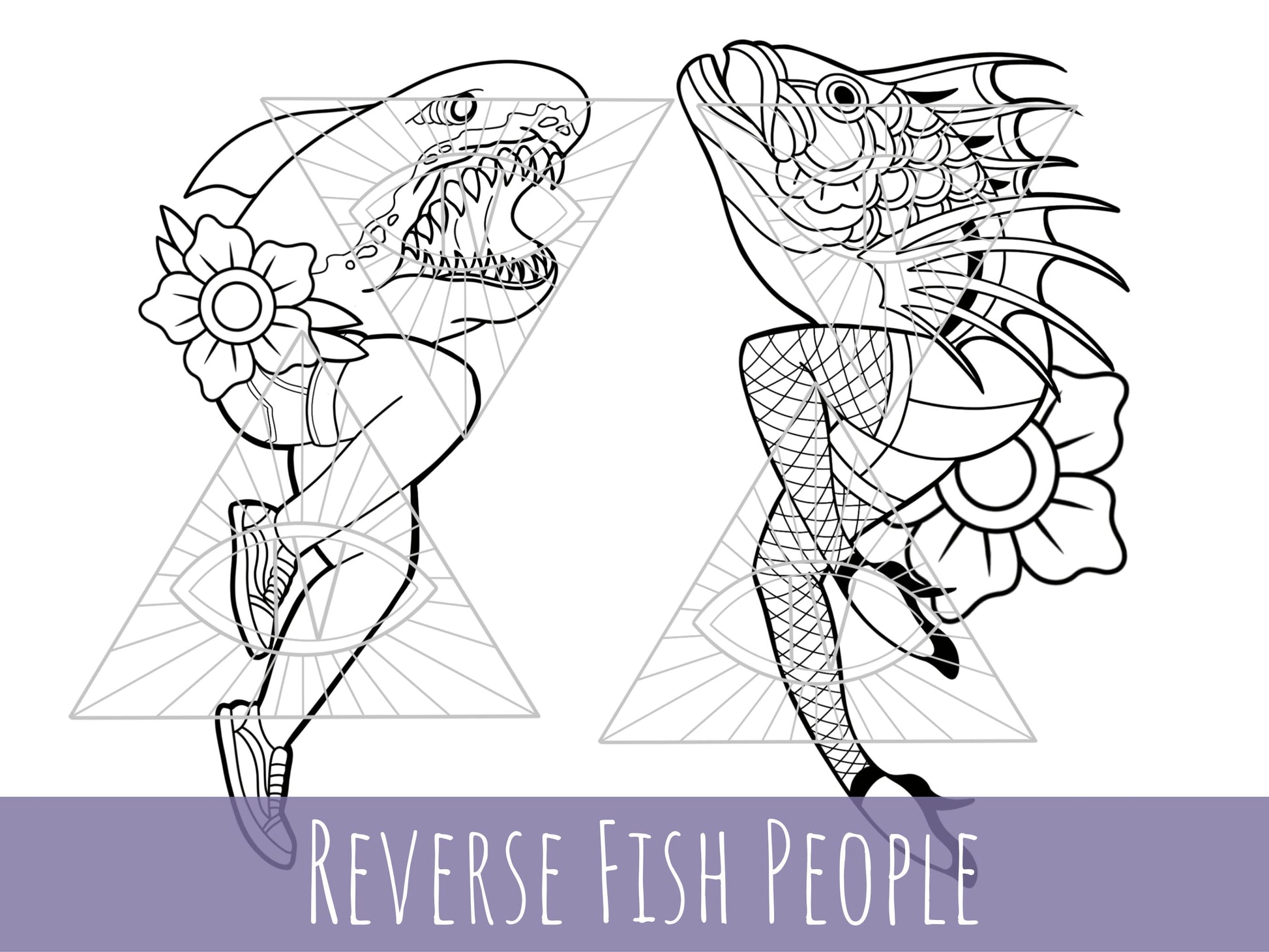 Goth SVG Bundle: Reverse Mermaid & Merman Traditional Tattoo Designs
