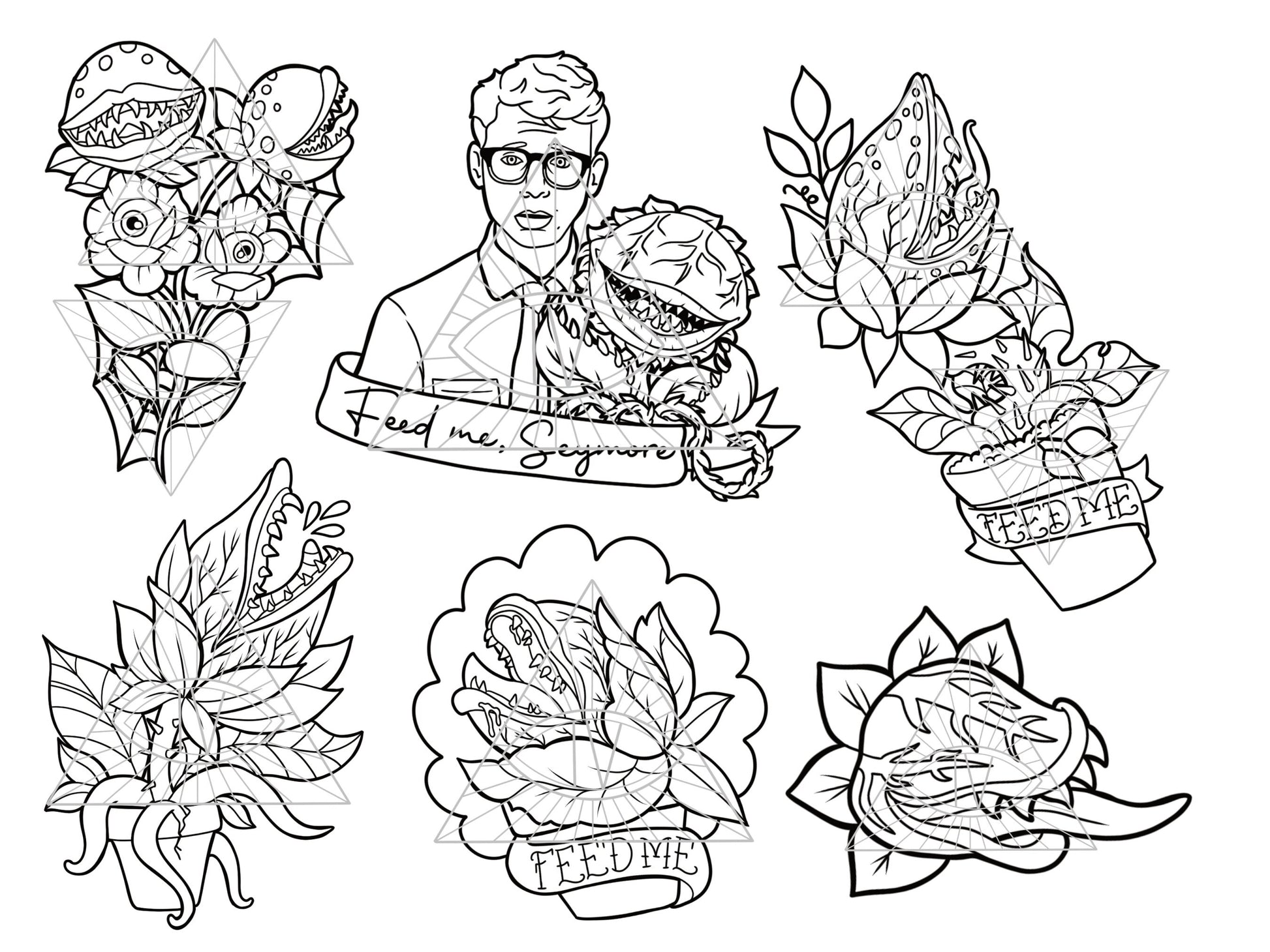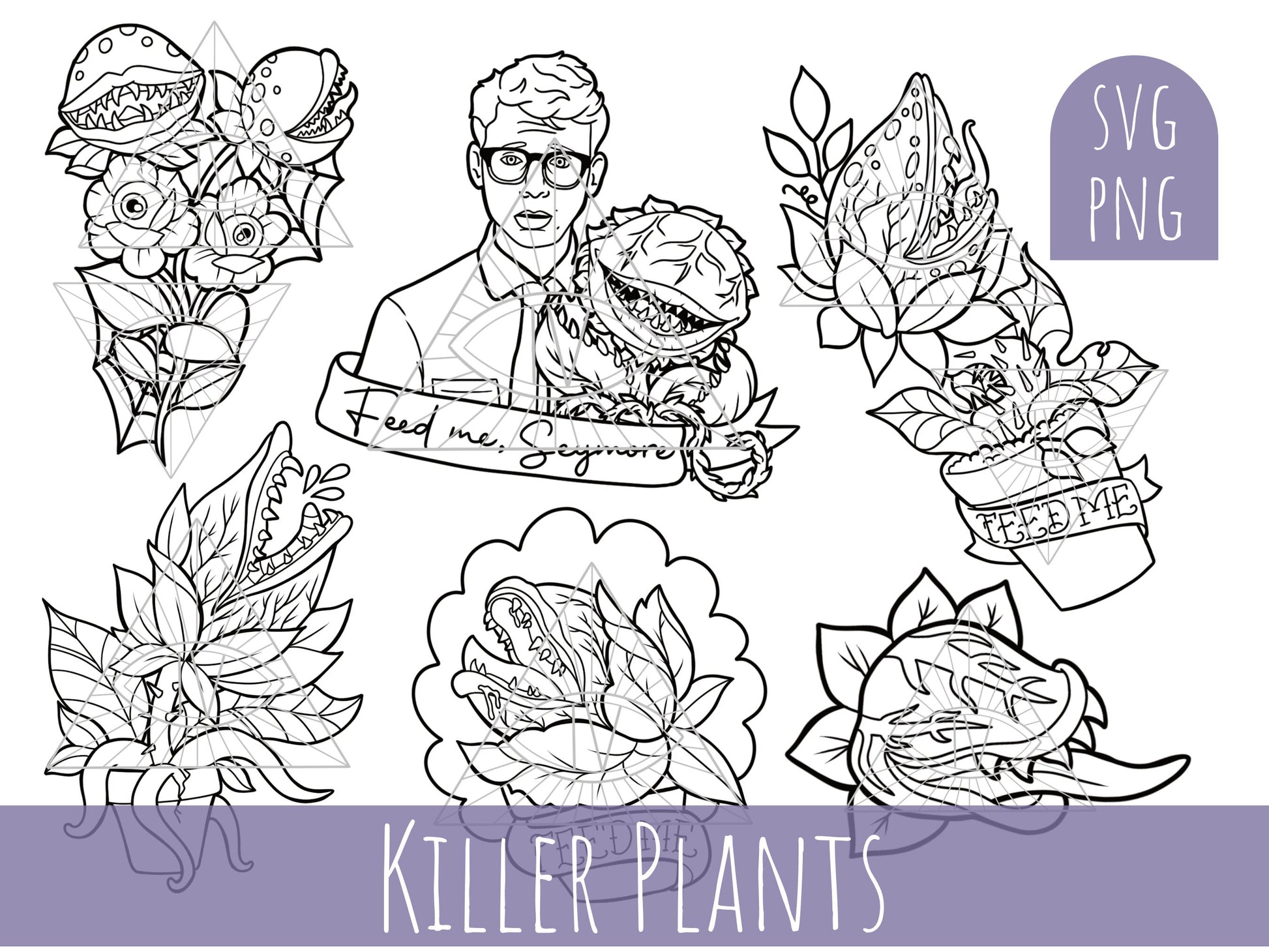 Tattoo Horror SVG PNG Exotic Plants Bundle for Shirts, Printable Stickers, & Coloring Sheets