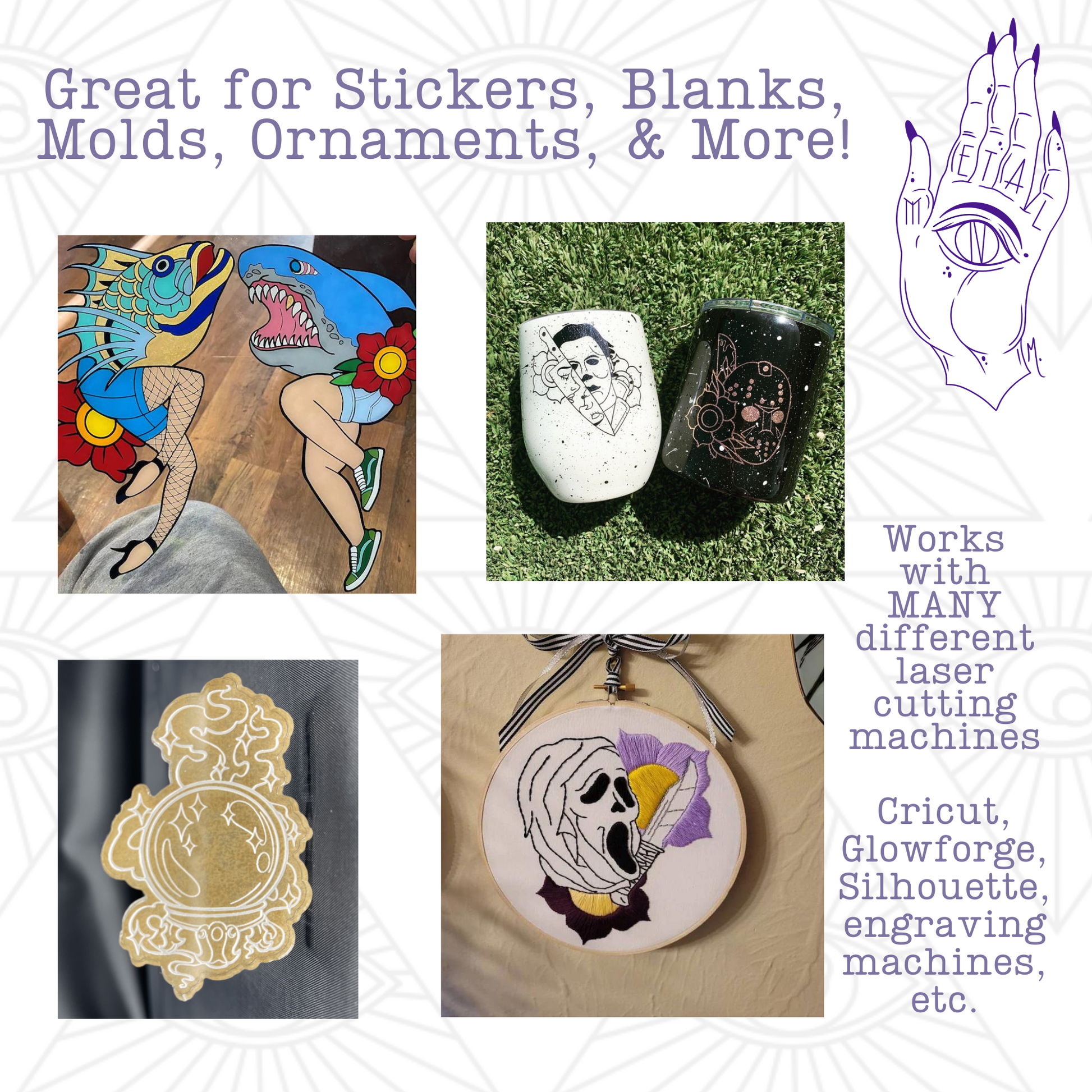 All of my images are hand-drawn and original. Some designs are highly detailed and may be best suited for larger cuts. Feel free to use these designs on any physical products you make, but please do not sell the designs in digital form.