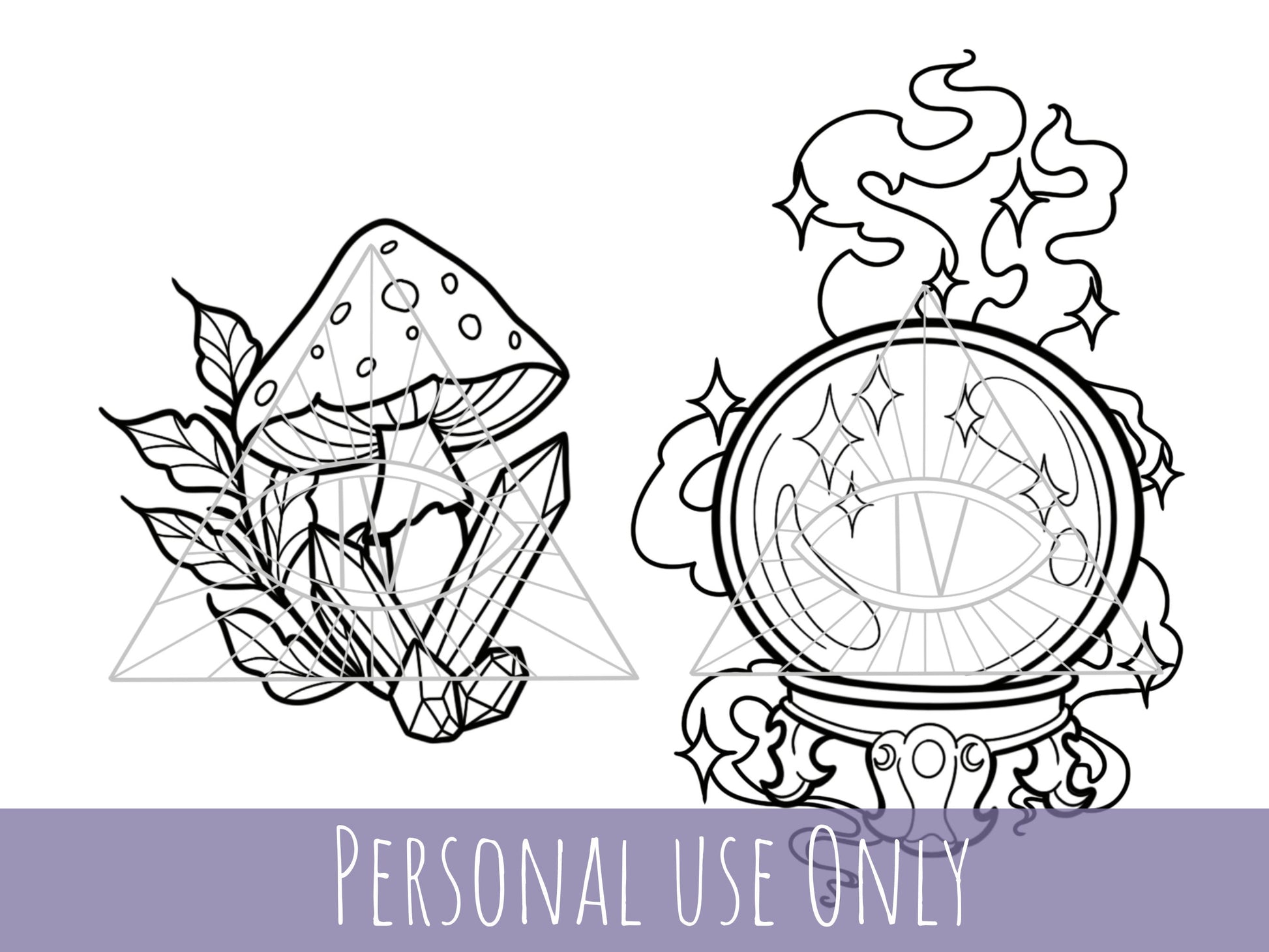 This listing is for a DIGITAL DOWNLOAD cutting file (font not included). cutting SVG and PNG file of witchy style crystal ball, planchette, mushroom and flower.