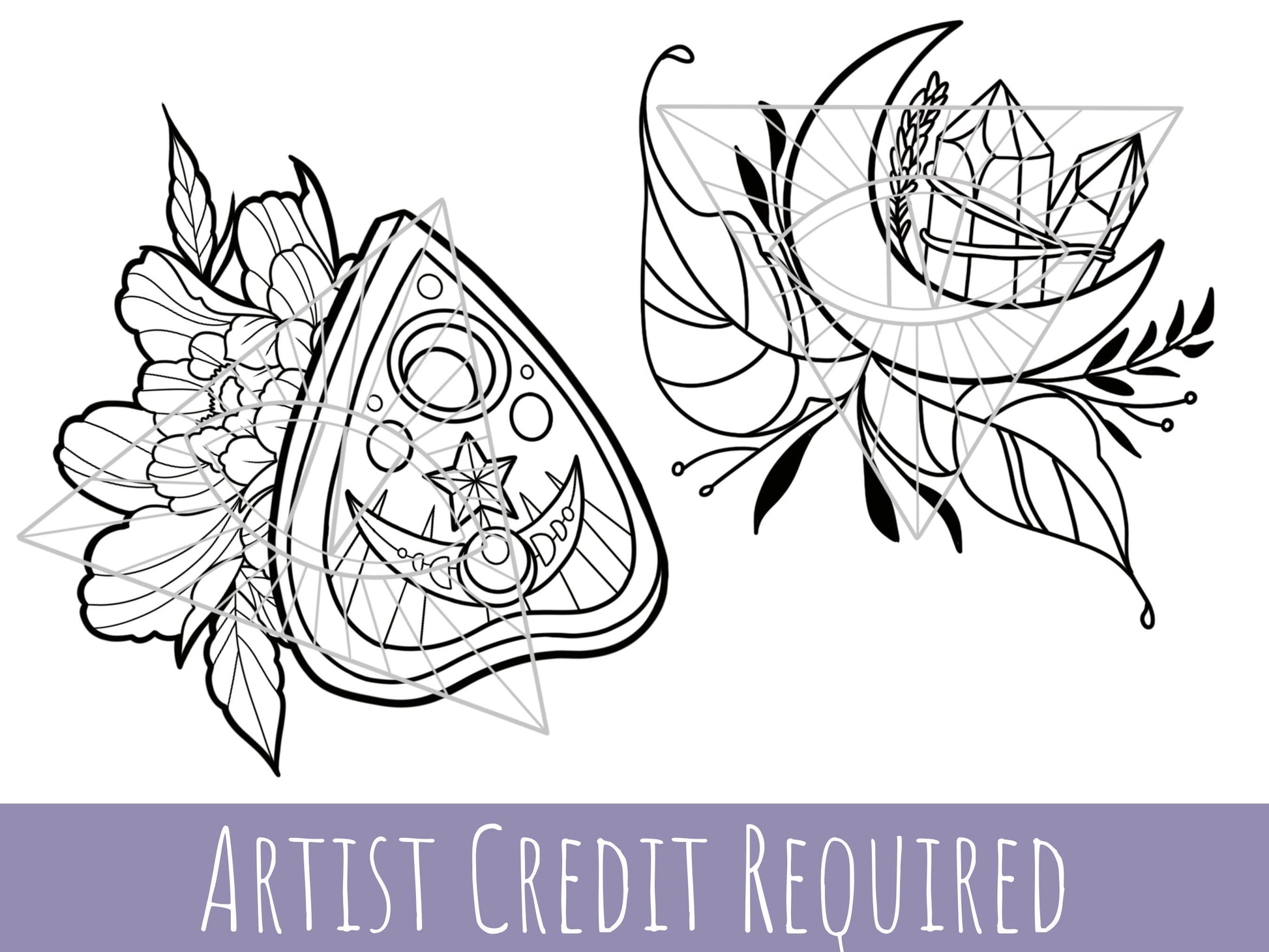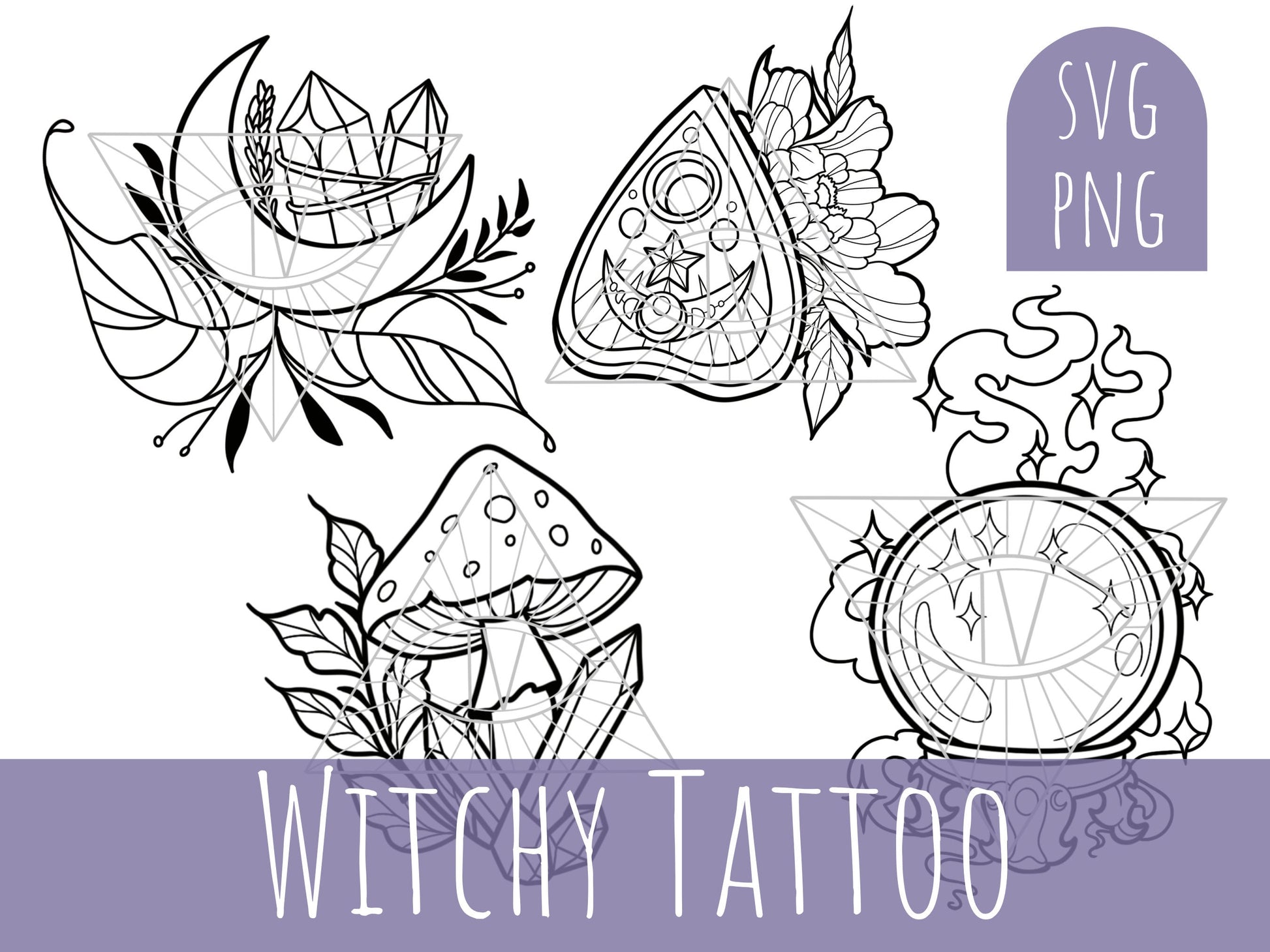 Witchy Tattoo Design Bundle for Cricut Projects. Goth PNG SVG